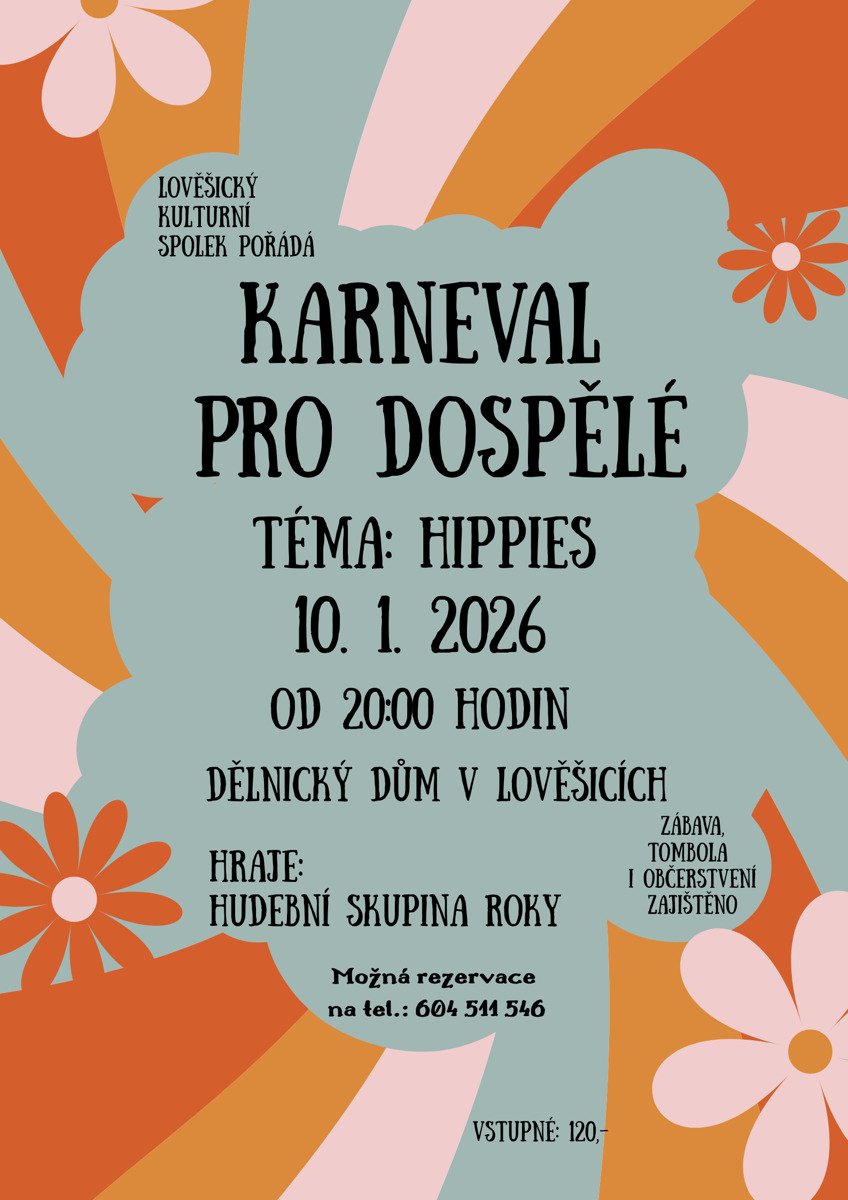 Lověšický kulturní spolek zve na karneval pro dospělé na téma hippies. ;-)