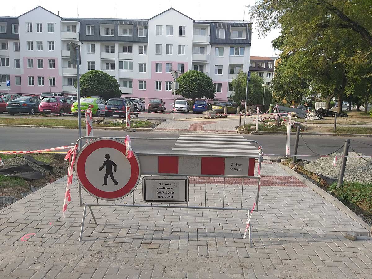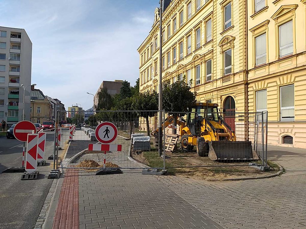 Část Palackého ulice je pro řidiče stále uzavřena kvůli budování nového autobusového zálivu a zastávky ve směru od gymnázia k mostu Míru.