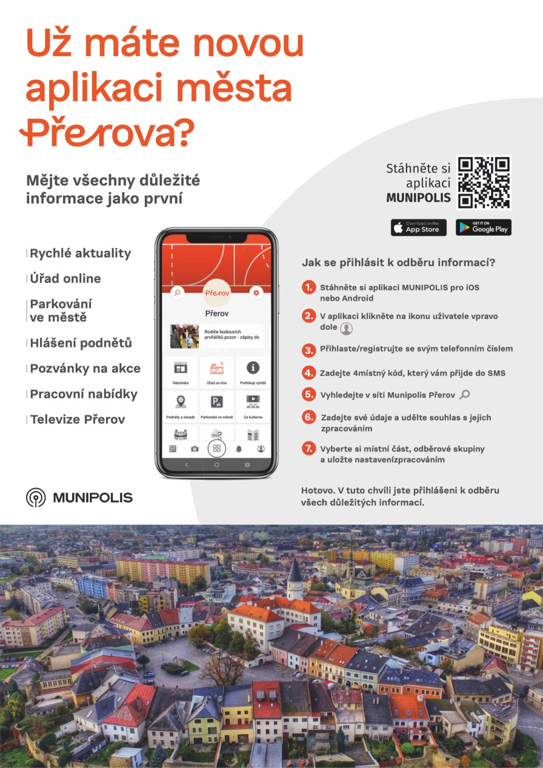 Přerov zahájil provoz modernizované verze aplikace MUNIPOLIS, která funguje jako přehledný digitální rozcestník pro obyvatele města. Na jednom místě nabízí možnost objednání se na úřad, on-line úhradu parkovného, platbu místních poplatků, ale také informace o kulturním a společenském dění ve městě, nákup vstupenek do Městského domu, digitální podobu Přerovské spojky či informace o plaveckém areálu.