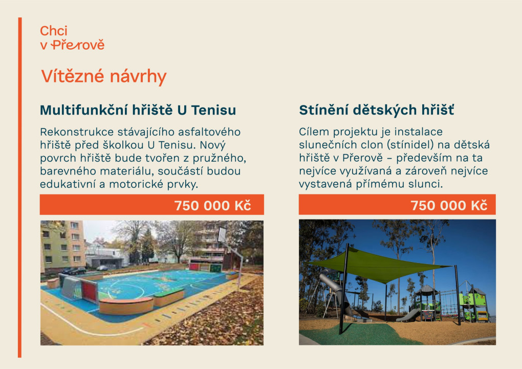 O výsledcích letošního participativního rozpočtu je rozhodnuto! Obyvatelé města v anketě "Chci v Přerově" odhlasovali realizaci dvou projektů, které se vešly do vyčleněné částky 1,5 milionu korun (každý za 750 tisíc).