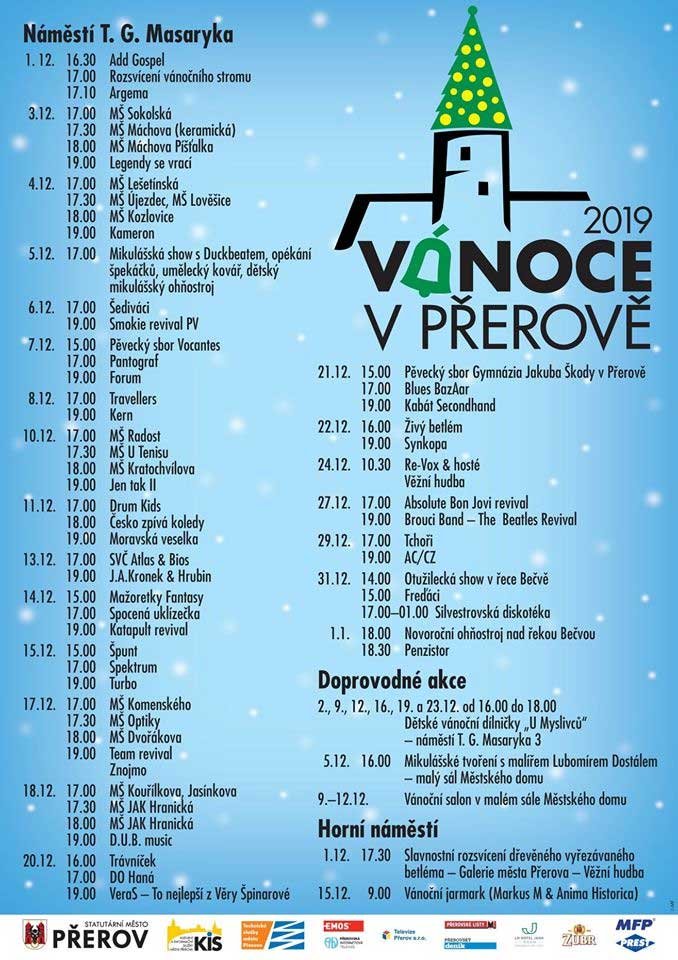 V neděli 1. prosince bude adventní program zahájen o půl páté vystoupením ADD Gospel, úderem páté hodiny rozsvítí strom primátor Přerova s dětmi, které letos získaly ocenění Scholar a o deset minut později rozproudí návštěvníkům krev kapela Argema. Kdo má rád tradici spojenou s přerovským betlémem, může z koncertu přejít ke Galerii na Horní náměstí, kde se o půl šesté za doprovodu Věžní hudby betlém rozsvítí. Na Mikuláše pak čeká na malé Přerovany nejen show s Duckbeatem, ale také ohňostroj nad náměstím. Děti se mohou těšit i na vánoční dílničky v domě na adrese Masarykovo náměstí 3, kde si mohou pod dohledem lektorů vyrobit v určených dnech drobné ozdoby či dárky. A kdo má rád historickou atmosféru, ten už by si teď měl zaškrtnout v kalendáři neděli 15. prosince, protože právě v tento den se bude na Horním náměstí konat jarmark organizovaný skupinami Markus M & Anima Historica. Program nebude chybět ani na Štědrý den, kdy bude na pódiu před radnicí hrát od půl jedenácté kapela Re-Vox a z oken Městského domu následně zazní tóny Věžní hudby.